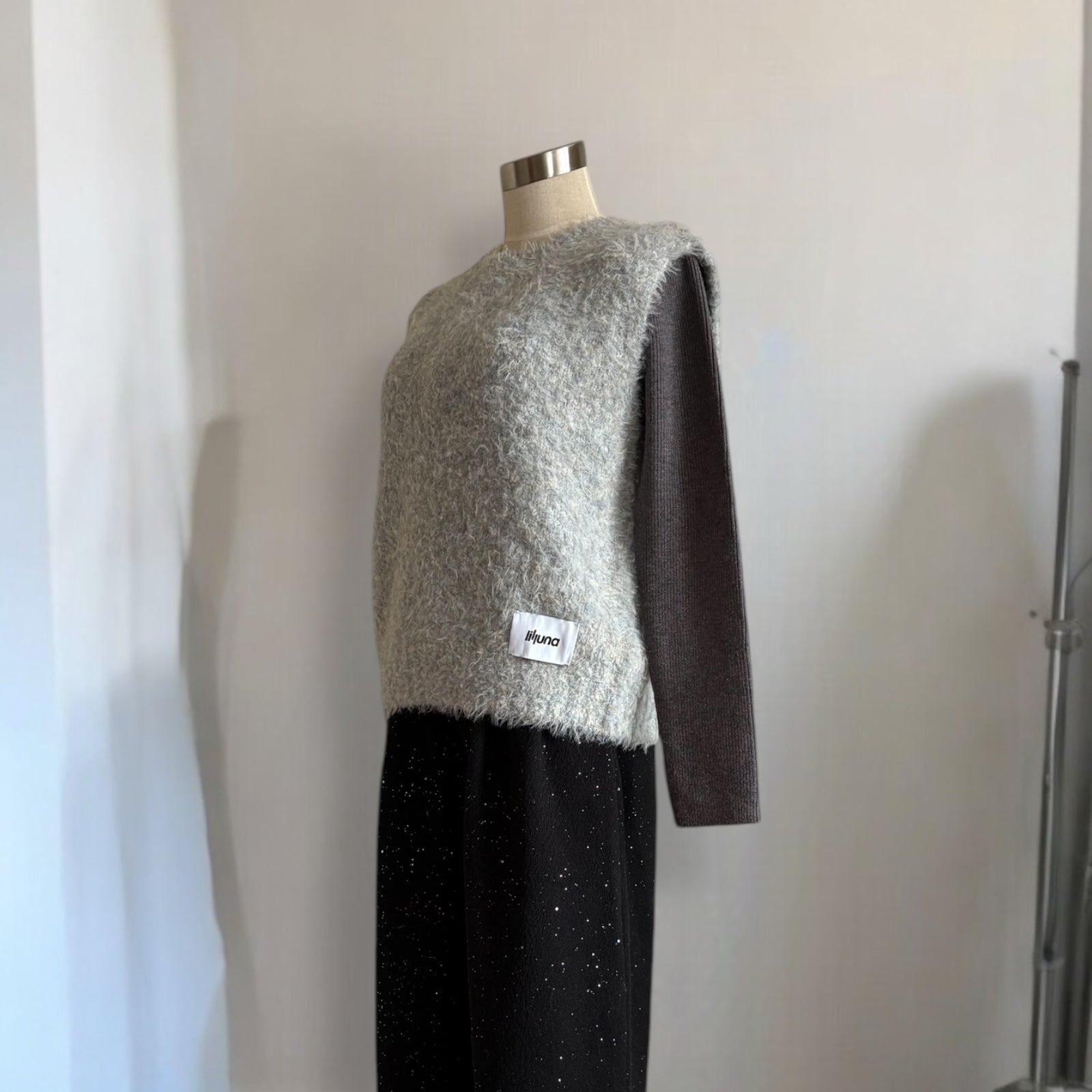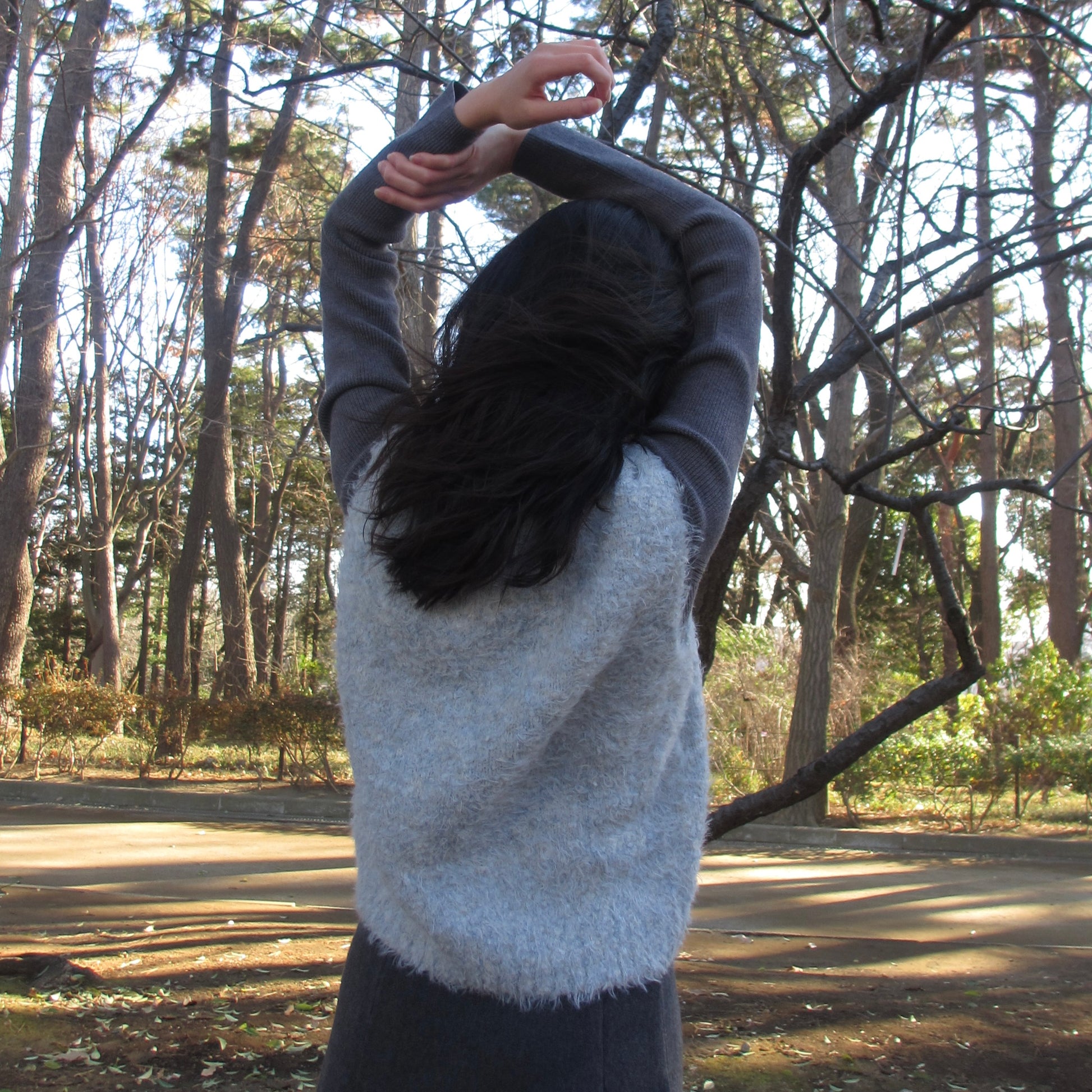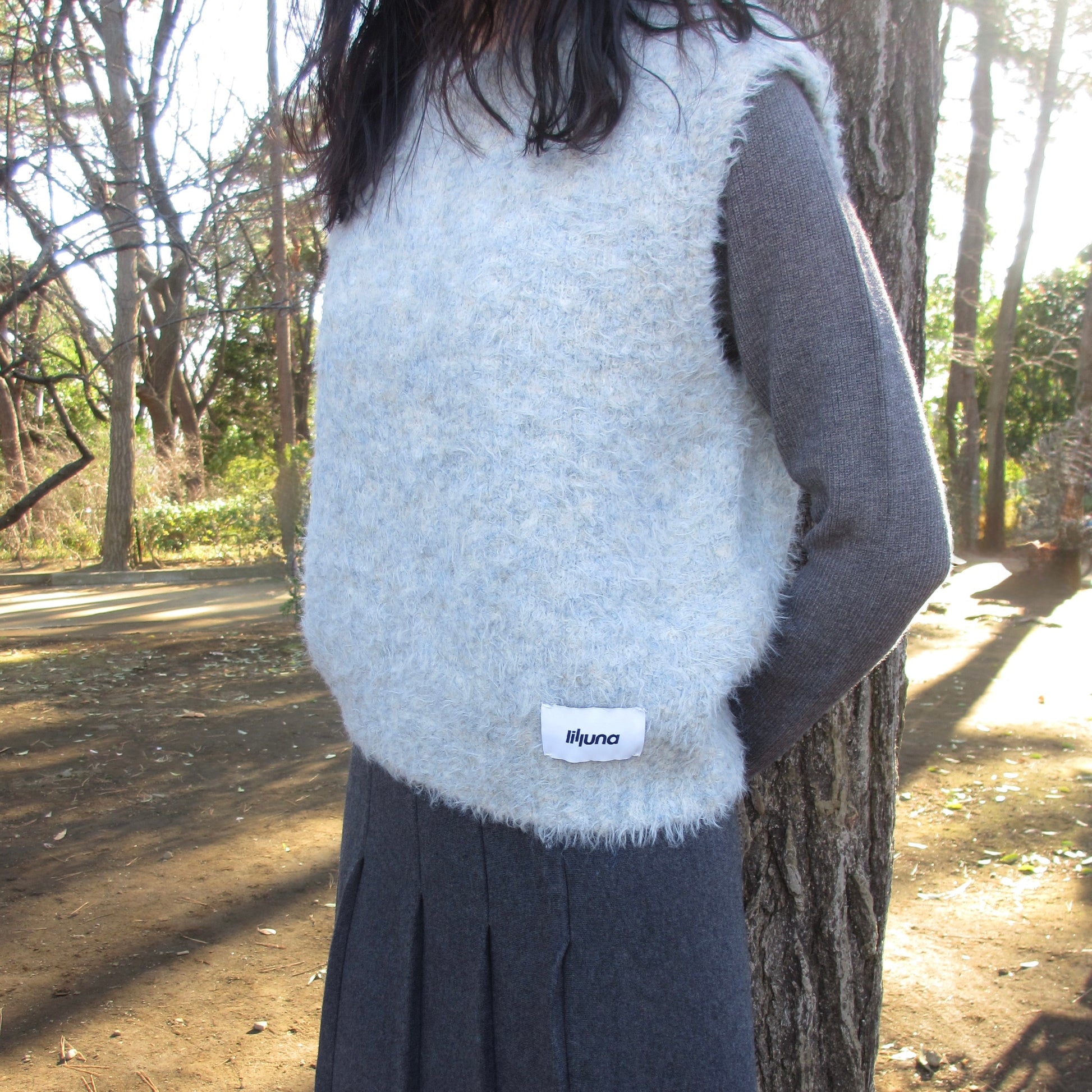 ・ミックス糸で編まれたgray × light blueのシャギーニット