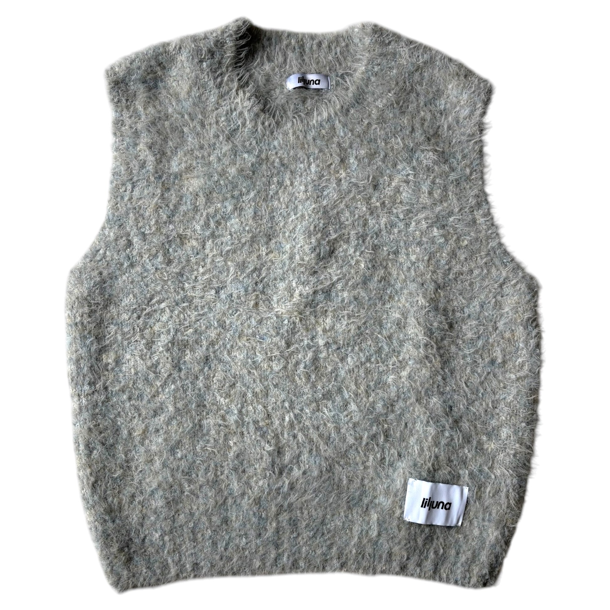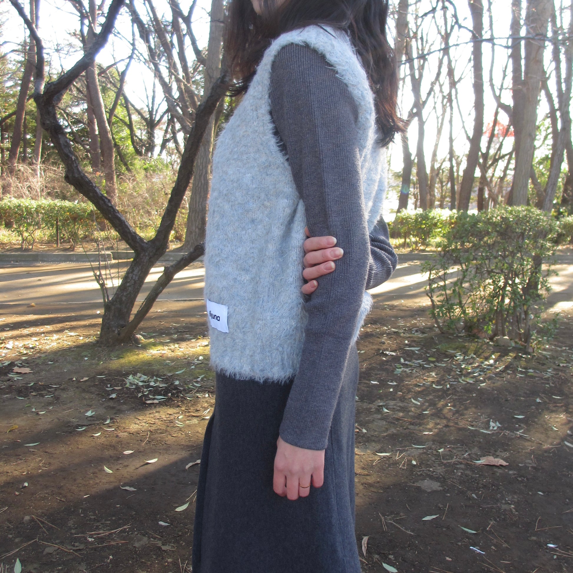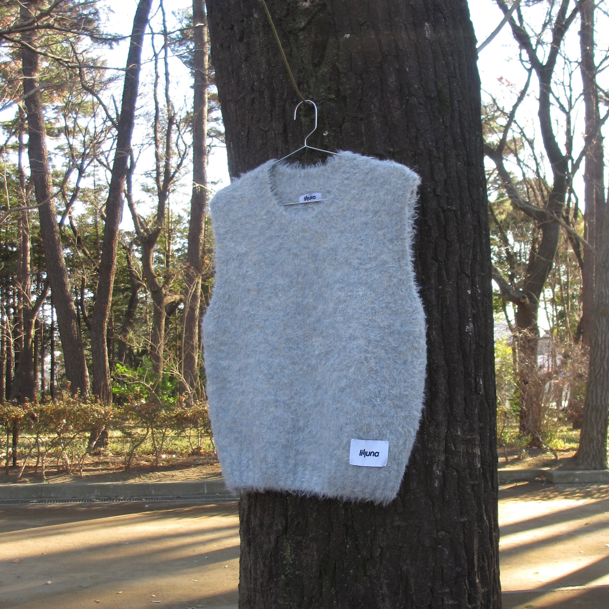 ・ミックス糸で編まれたgray × light blueのシャギーニット